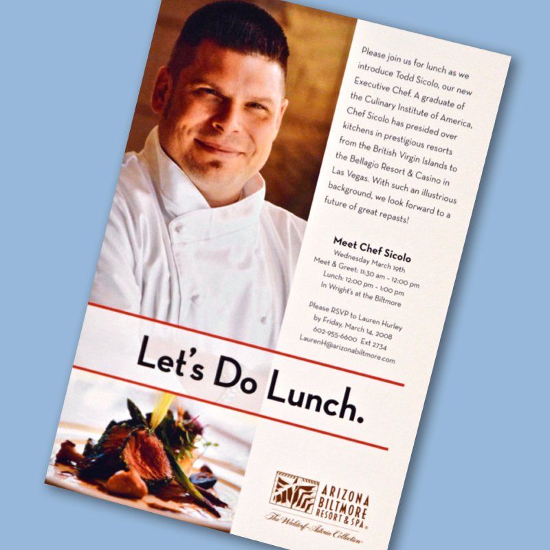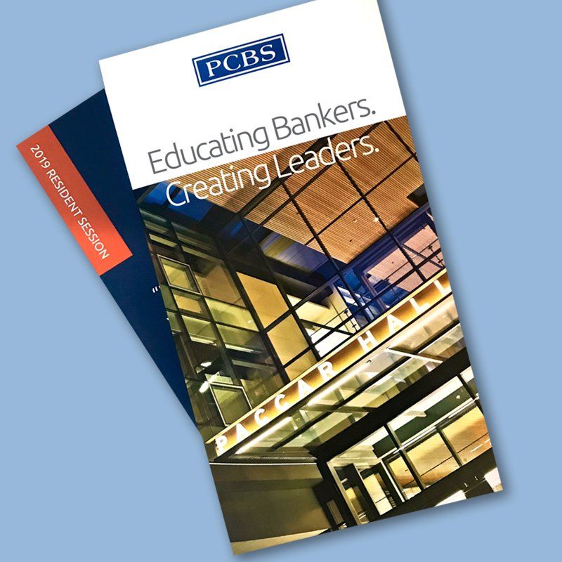 2019 self-mailer marketing brochure developed to attract banking executives.