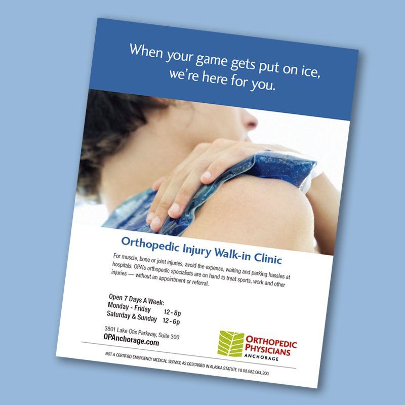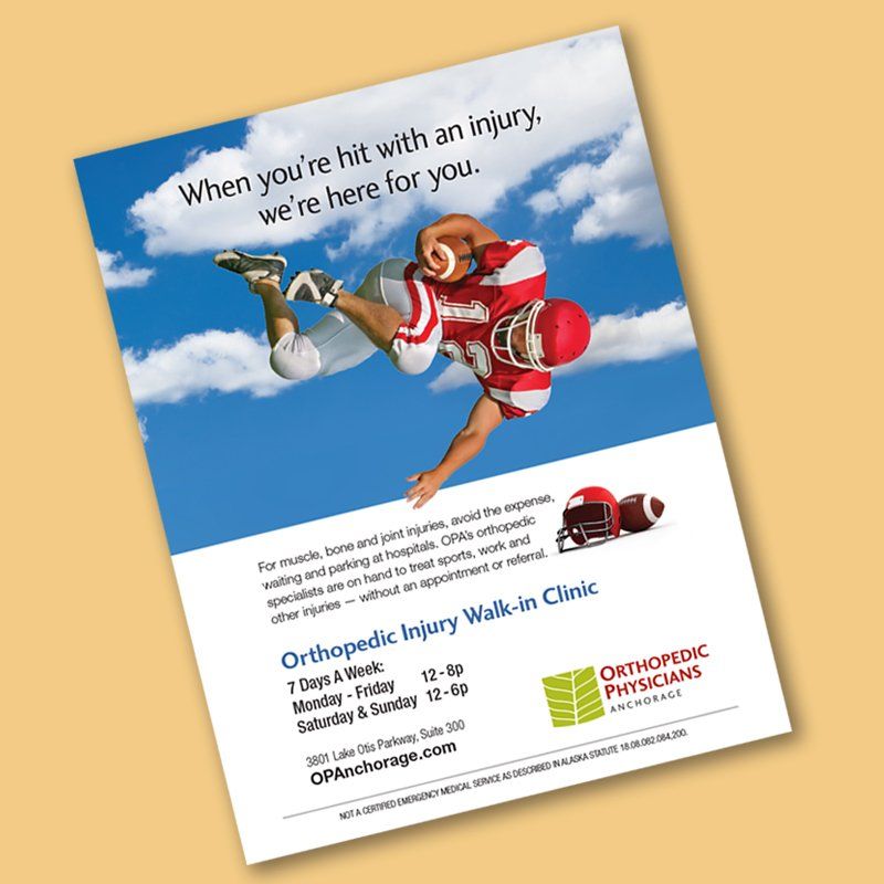 Designed to promote client's injury walk-in clinic that works for all athletic events.